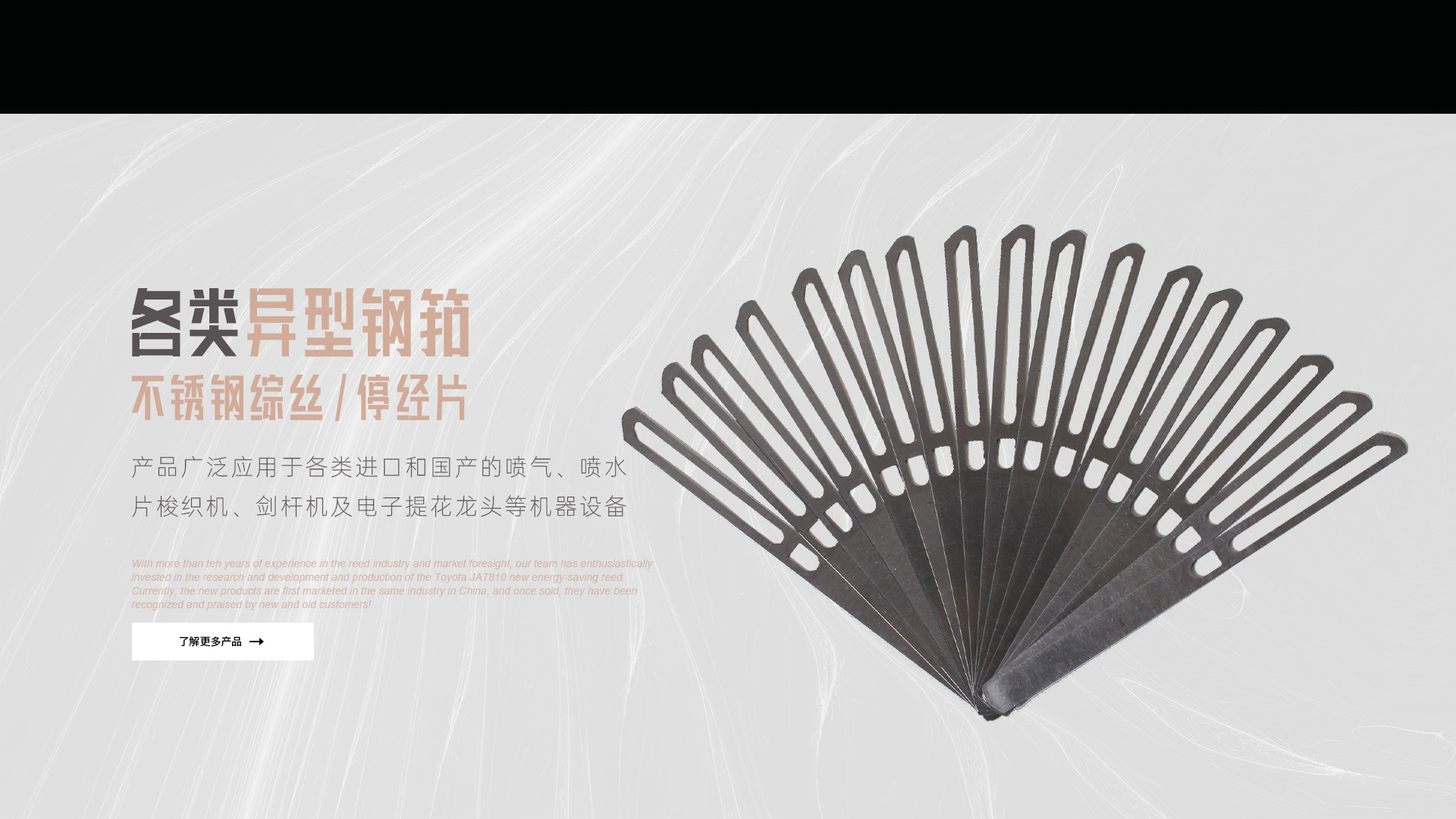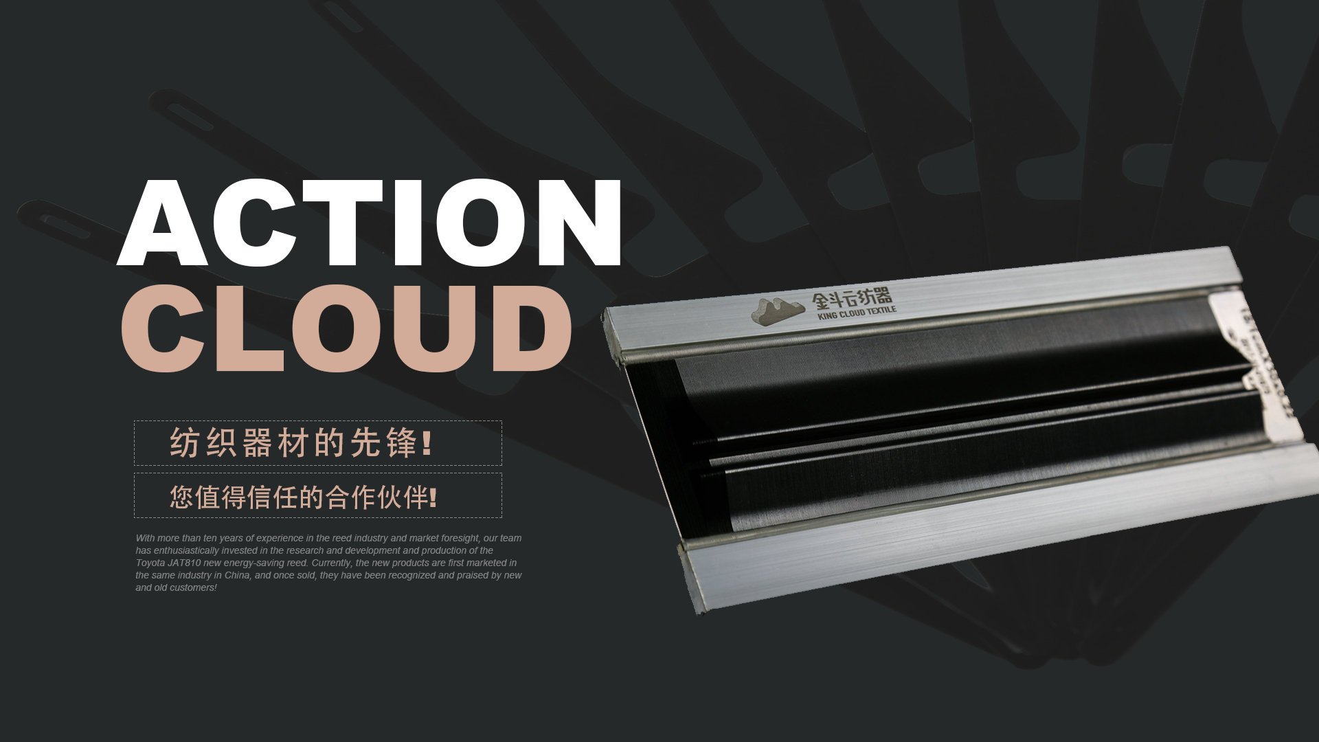 憑借十多年鋼筘行業(yè)經(jīng)驗及對市場的前瞻性,我們團隊滿懷熱情的投入到豐田JAT810新型節(jié)能鋼筘的研發(fā)和生產當中,目前新產品在國內同行業(yè)中先行上市銷售,一經(jīng)銷售就得到了新老客戶的認可和好評!